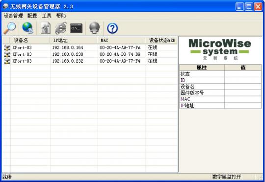 网关、中继等设备采用光盘中附带的无线网关设备管理器来进行配置,系统中的每个网络设备在无线网关设备管理器中都可以进行查看和修改。主要功能有网络配置、IP设置、DHCP功能设置、主机列表设定、串口设定与封包控制策略、GPIO基本状态配置、安全设定与其他高级设定。